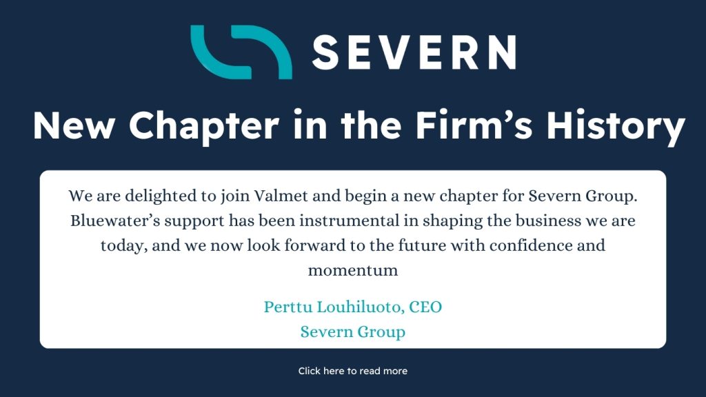 Perttu Louhiluoto CEO of Severn Group, said, “We are proud to welcome Valmet as our new owners and look forward to building on the strong foundation laid over recent years. Thanks to Bluewater’s visionary leadership, Severn Group has grown from a British manufacturer in the energy space into a global industrial business with a truly international footprint. As we look ahead, the scale and breadth of the global opportunities in front of us are greater than ever and ones we cannot fully unlock alone. Joining Valmet positions us to accelerate our growth, expand into new markets, and deliver even greater value to customers worldwide. We are excited about this next phase of Severn’s journey.”